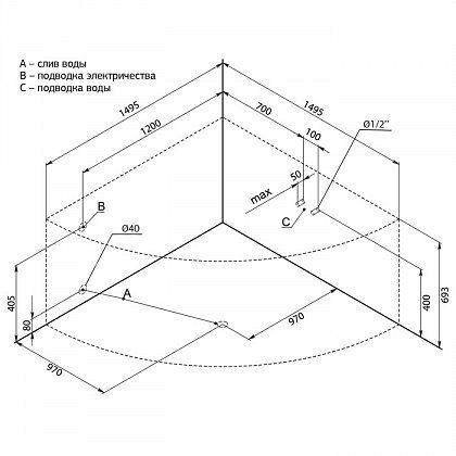 • Размер: 150x150x71,5 см. Глубина: 55 см. Объем: 370 л.