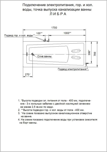 Габариты (Д Ш), см: 170х70Высота с опорой, см: 62Объем, л: 220 Форма: прямоугольнаяМонтаж: пристеннаяРасположение перелива: стандартноеДиаметр слива ванны, см: 5,2Материал: 100% литьевой акрилТолщина акрилового листа, мм: 4Гарантия: 20 летСтрана: Россия Вид опоры: каркас, ножки опорные, приобретаются отдельноЭкран: фронтальный и боковой, приобретаются отдельноСлив-перелив: приобретается отдельноАнтискользящее покрытие: нескользкая поверхностьПодголовник: приобретается отдельноРучки: приобретаются отдельно Система гидромассажа: установка по желаниюАэромассаж: установка по желаниюХромотерапия: установка по желаниюРучки, поручни для ванны: установка по желаниюВстроенные смесители: установка по желаниюИзменение конструкции каркаса: установка по желаниюОзонирование: нет, установка не предусмотренаЗащита от сухого пуска: установка по желаниюУправление: любое по желанию