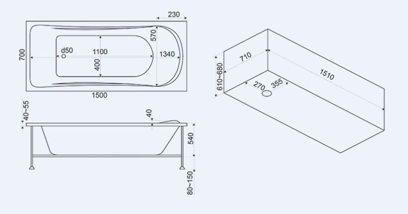 Состав поставки: Ванна, Каркас