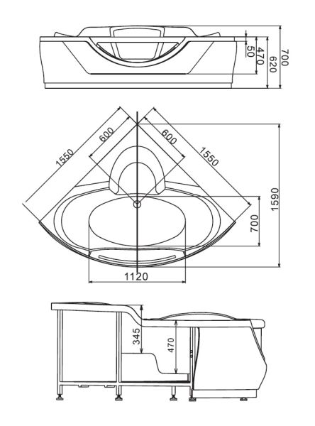 Акриловая ванна Gemy G9025 II B 155x155x70