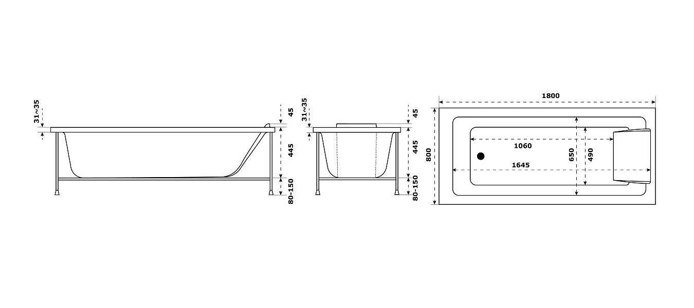 Смягченные углы с внутренней стороны чаши ванны облегчают уход.РАЗМЕРЫ :180 x 80 x 44,50 см
