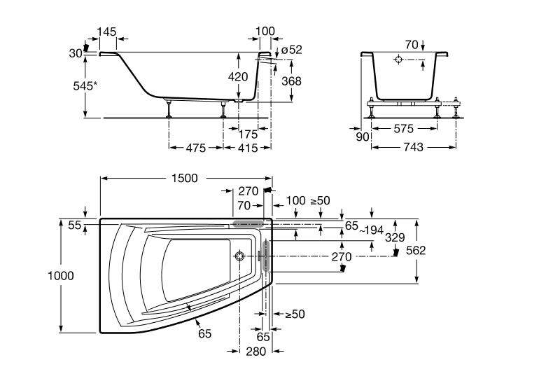 Акриловая ванна Roca Hall Angular 150х100 ZRU9302864 L