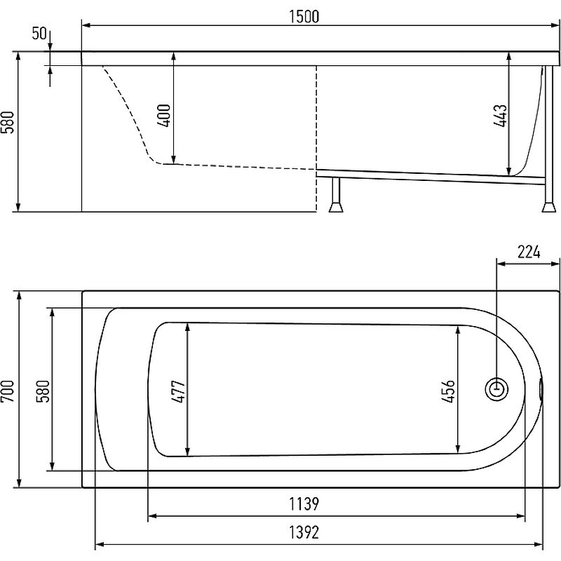 Акриловая ванна Timo Mika MIKA1570 150x70 см