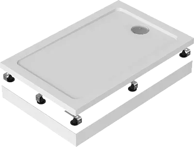 Акриловый поддон, усиленный листом влагостойкого ДСП. Может армироваться как полиэфирной смолой, так и безопасной, экологически чистой полиуретановой пеной высокой плотности, имеет 8 регулируемых ножек.