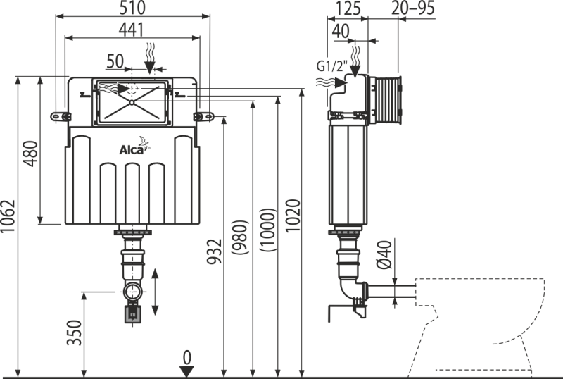 Бачок для унитаза AlcaPlast Basicмodul белый AM113