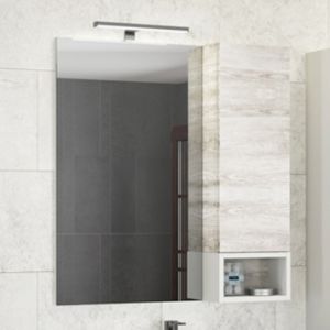 Название: Зеркало шкаф Артикул: Прага 75 (правое) Варианты цвета: Дуб Белый Материал корпуса: влагостойкое ЛДСП Габариты (ШхВхГ): 750*800*140 мм Зеркальное высококачественное полотно с амальгамой на основе серебра. Створка мебельного элемента оснащена петлями с системой Push-to-open (открытие при нажатии). За дверцей одна горизонтальная полка.