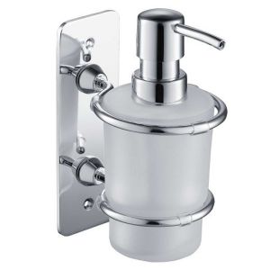 Дозатор Timo Nelson выполнен в стиле ретро, который будет органично смотреться в интерьере ванной комнаты. Дозатор изготовлен из матового стекла, держатель из высококачественной латуни класса А с прочным хромированным покрытием, отличается высокой надежностью и хорошими антикоррозийными свойствами, а также привлекательным внешним видом.
