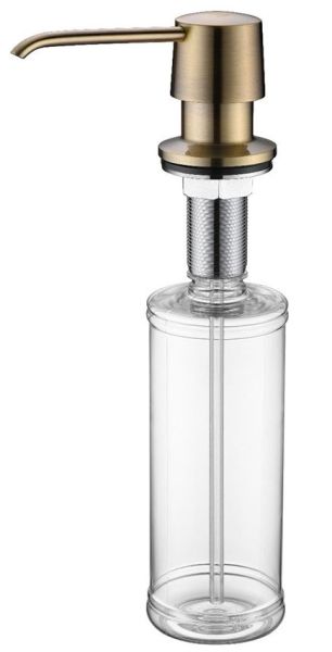 Дозатор для кухни и ванной, артикул D001-BRДозатор для кухни или ванной, встраиваемый, объемом 350 мл, матовая поверхность, изготовлен из латуни и пластика.