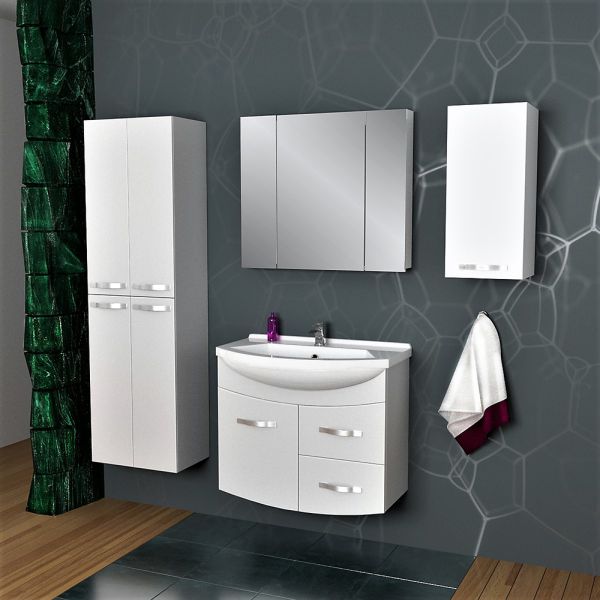 Подвесная коллекция со скругленными линиями фасада в 4-х размерах 55, 65, 75, 90 Лаконичный дизайн, глянцевая поверхность фасада, механизмы Hettich. Небольшая глубина тумбы органично впишется в любую, даже небольшую ванную комнату. Глубокий ящик