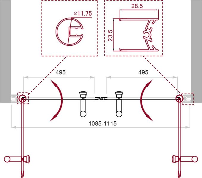 Регулировка ширины: предусмотрена за счет боковых профилей