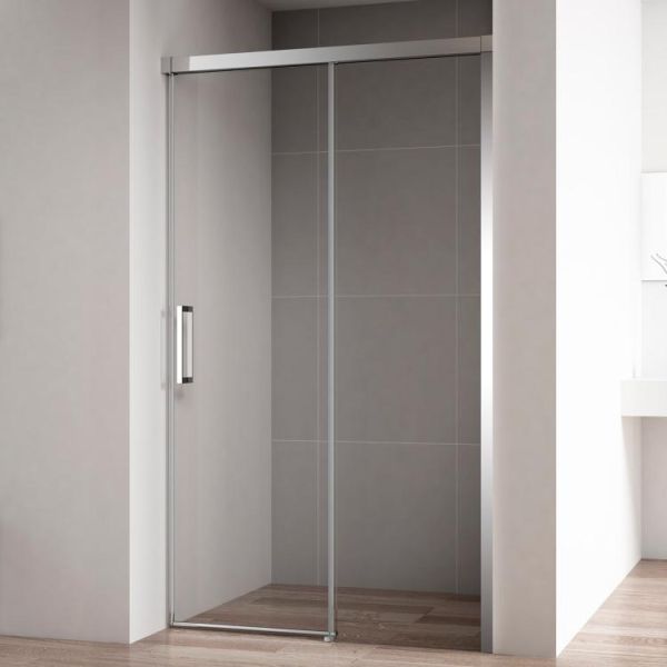 Дверь в проем.Тип дверей: одна раздвижная дверь.Стекло: 8 мм, прозрачное.Исполнение: хром. Поддон: тип АН, А или барьер. Поддон или барьер приобретается отдельно. Особенности: подвижные ролики плавно скользят по металлическим направляющим.