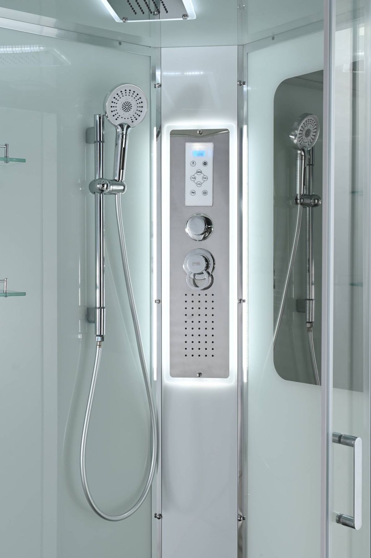 Стильная душевая кабина AvaCan сочетает в себе высокую функциональность, практичность и надежность. При изготовлении применяется безопасное закаленное стекло, надежно фиксируемое алюминиевым профилем. Профиль сделан из алюминия повышенной прочности. Сборка без силикона (увеличивает срок службы, защищает от протечек), внутренняя сборка (облегчает установку и ревизию; позволяет установить в ограниченном пространстве и обойтись без демонтажа других сантехнических приборов), смеситель резьбовой (без хомутов). Двойные металлические ролики дверей (распределение нагрузки на два ролика, увеличивают срок службы). Душевая штанга(позволяет регулировать по высоте ручную лейку), ручная арома-лейка с витамином С (картридж в комплекте,есть возможность замены или удаления картриджа), полочки(из стекла, с ограничителем), сифон с гидрозатвором.
