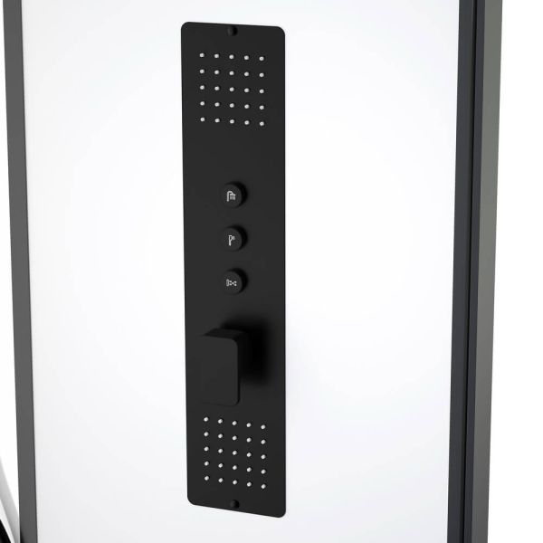 Душевая кабина Black & White Galaxy 8022000Стекло нового поколения «Super White» – белое стекло высочайшего качества, с применением в качестве исходного материала стекла Optiwhite от Pilkington (Англия). Верхний тропический душ. Ручной душ. Закаленное стекло 6 мм. Черный матовый профиль. Раздвижной тип дверей. Акриловый поддон в сером цвете высотой 150 мм. Усиленный гладкий шланг лейки. Надежные стальные ручки.