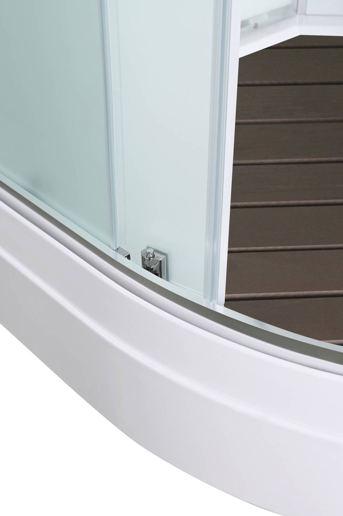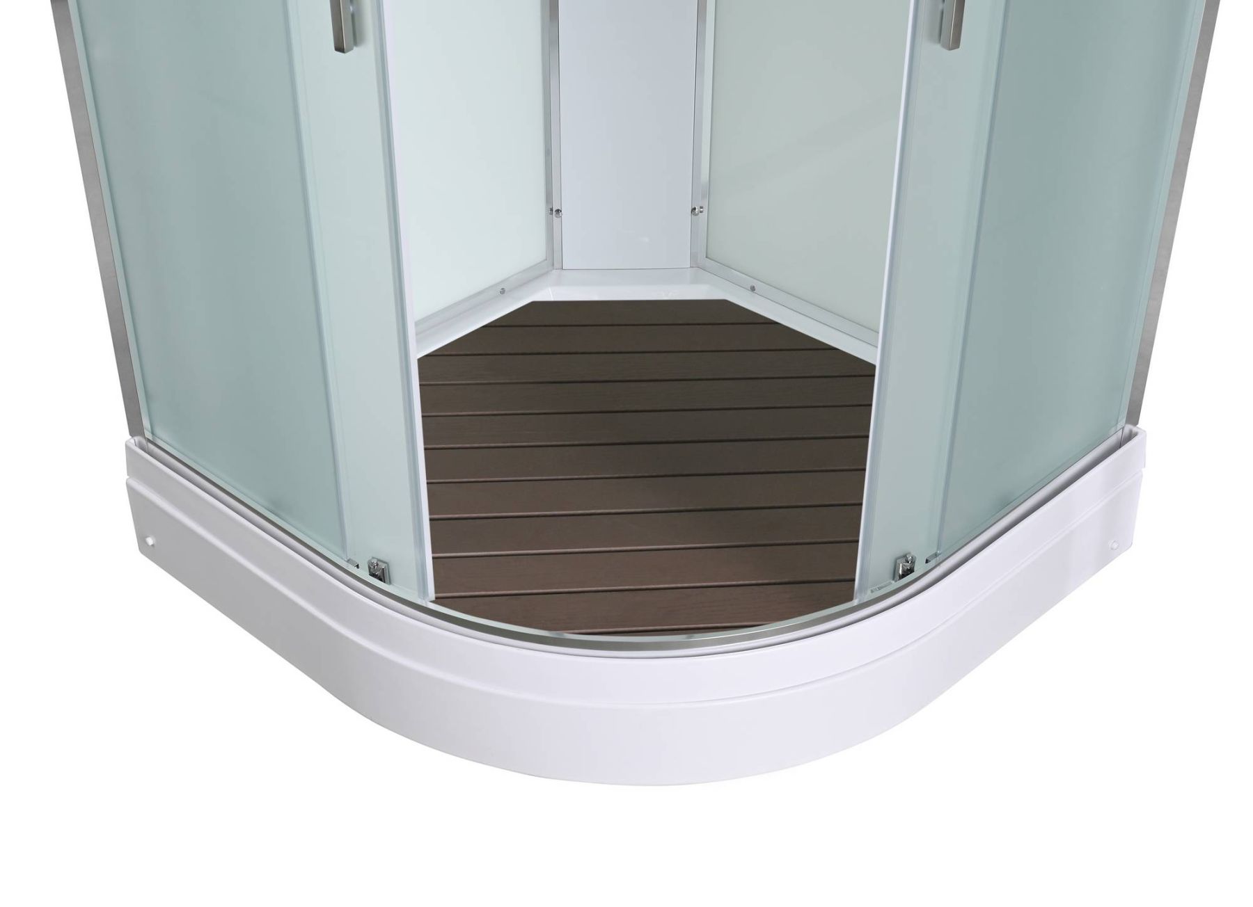 Стильная душевая кабина AvaCan EM2080 сочетает в себе высокую функциональность, практичность и надежность. При изготовлении применяется безопасное закаленное стекло толщиной 5 мм (матовое), надежно фиксируемое алюминиевым профилем. Сборка без силикона (увеличивает срок службы), внутренняя сборка(облегчает установку и ревизию; позволяет установить в ограниченном пространстве), смеситель резьбовой (без хомутов). Съемный экран поддона (позволяет осуществлять ревизию сифона). Цвет профиля  хром. Двойные металлические ролики дверей (увеличивают срок службы).В комплекте : душевая штанга, две полочки , тропический (верхний) душ, арома-лейка с витамином С (картридж съемный),полимерная вставка в поддон(имитация дерева),сифон, ручки дверей из нержавейки , двойные ролики .