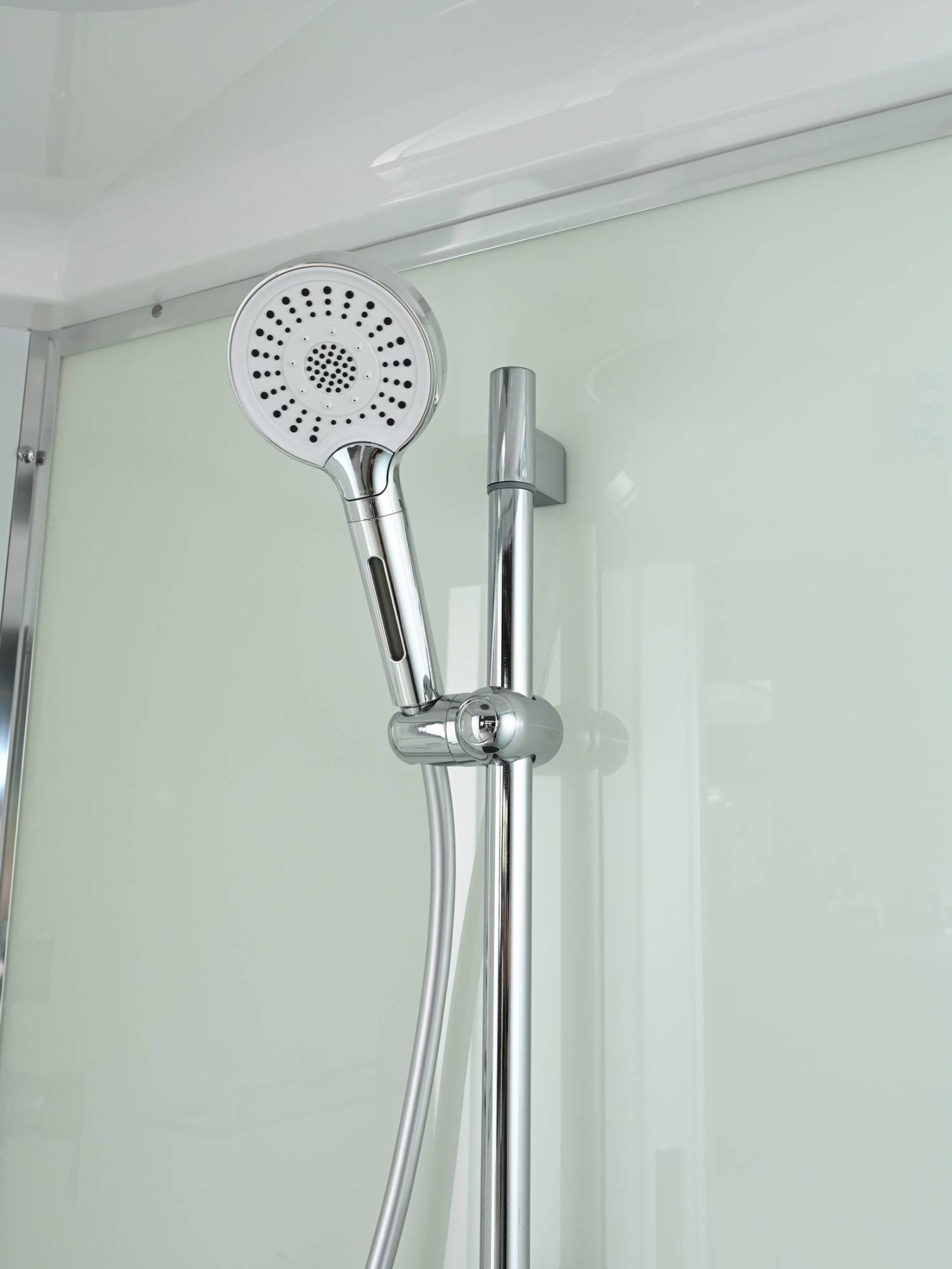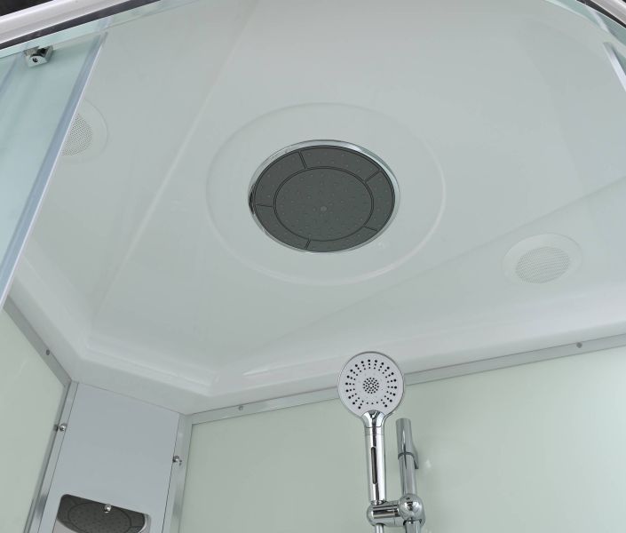 Стильная душевая кабина AvaCan EM2811LT сочетает в себе высокую функциональность, практичность и надежность. При изготовлении применяется безопасное закаленное стекло толщиной 5 мм (прозрачное), надежно фиксируемое алюминиевым профилем. Сборка без силикона (увеличивает срок службы), внутренняя сборка(облегчает установку и ревизию; позволяет установить в ограниченном пространстве), смеситель резьбовой (без хомутов). Съемный экран поддона (позволяет осуществлять ревизию сифона). Цвет профиля  хром. Двойные металлические ролики дверей (увеличивают срок службы).В комплекте : душевая штанга, две полочки , тропический (верхний) душ, арома-лейка с витамином С (картридж съемный),полимерная вставка в поддон(имитация дерева),сифон, ручки дверей из нержавейки , двойные ролики .
