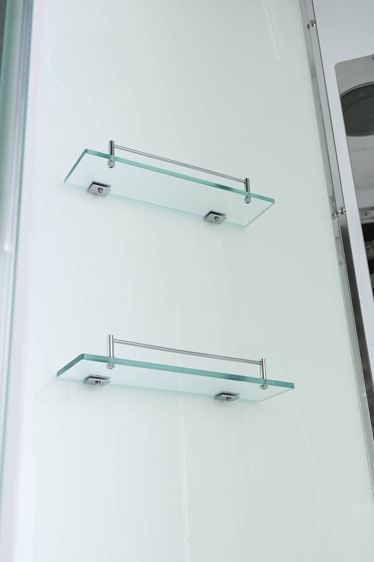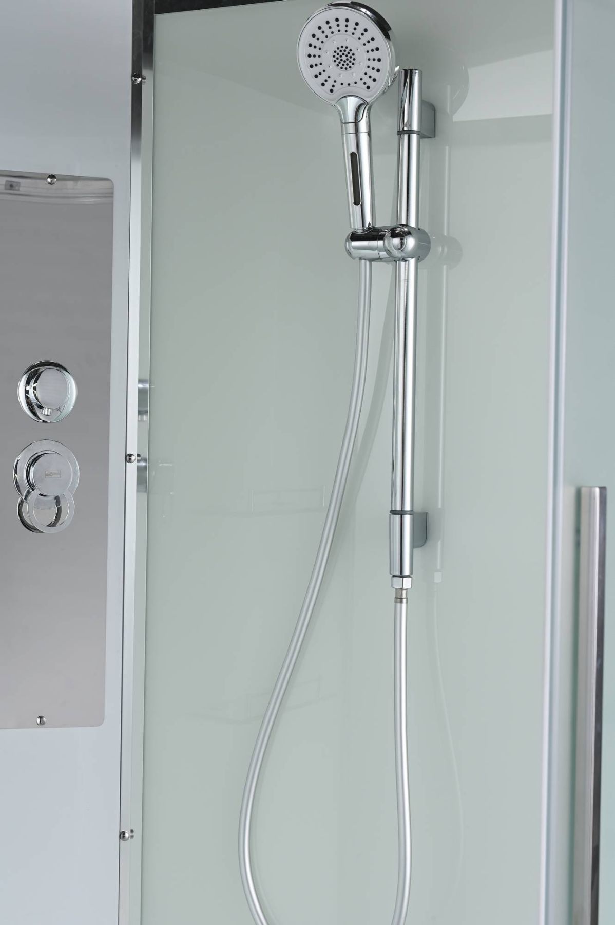Стильная душевая кабина AvaCan сочетает в себе высокую функциональность, практичность и надежность. При изготовлении применяется безопасное закаленное стекло, надежно фиксируемое алюминиевым профилем.Профиль сделан из алюминия повышенной прочности. Сборка без силикона (увеличивает срок службы, защищает от протечек), внутренняя сборка (облегчает установку и ревизию; позволяет установить в ограниченном пространстве и обойтись без демонтажа других сантехнических приборов), смеситель резьбовой (без хомутов). Съемный экран поддона (позволяет осуществлять подключение и ревизию сифона).Двойные металлические ролики дверей (распределение нагрузки на два ролика, увеличивают срок службы). Душевая штанга(позволяет регулировать по высоте ручную лейку), ручная арома-лейка с витамином С (картридж в комплекте,есть возможность замены или удаления картриджа), полочки(из стекла, с ограничителем), сифон с гидрозатвором, сенсорный пульт управления с функциями: блютуз, LED подсветка, радио, вытяжка, гидромассаж спины, тропический (верхний) душ.