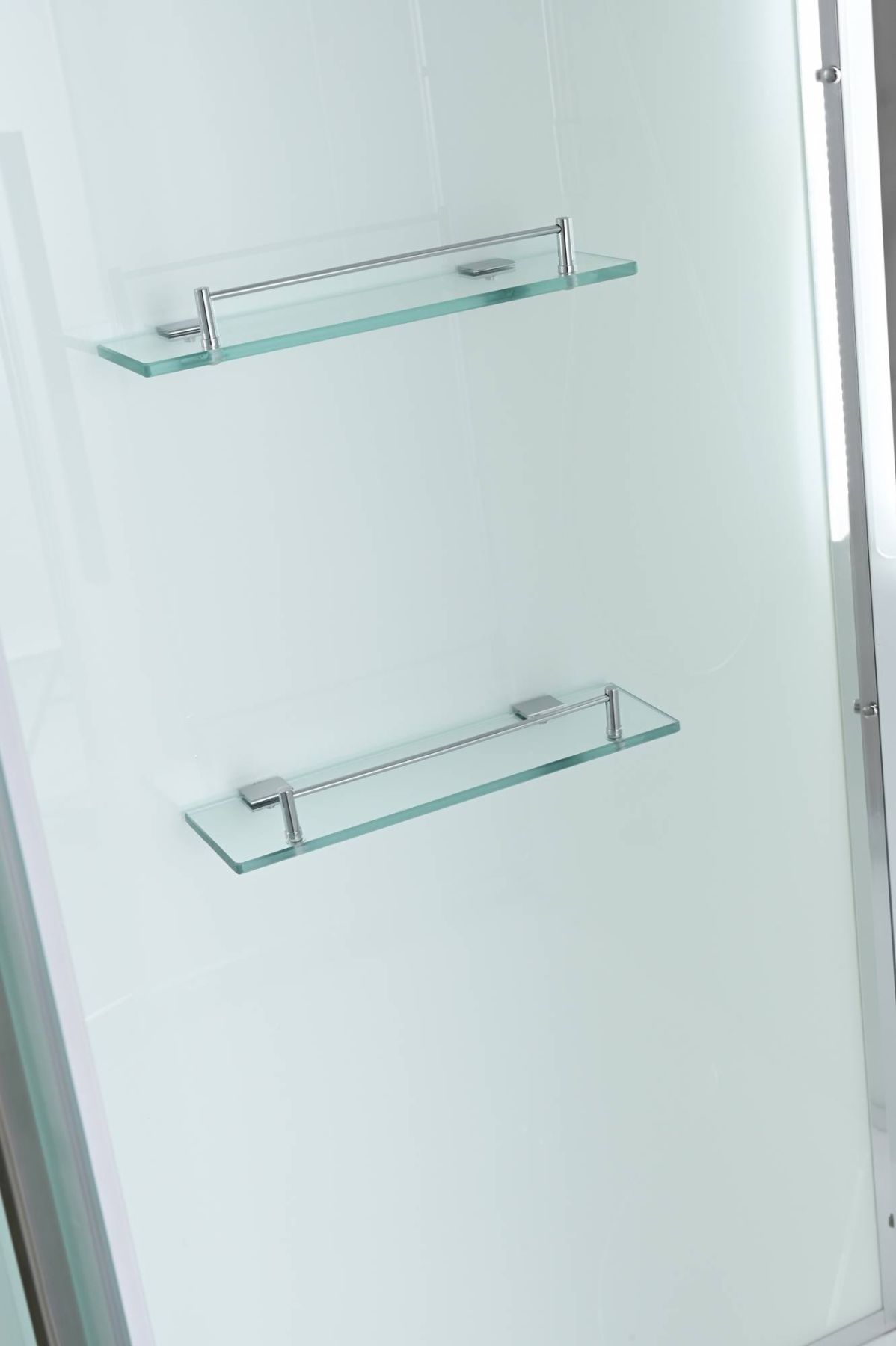 Стильная душевая кабина AvaCan сочетает в себе высокую функциональность, практичность и надежность. При изготовлении применяется безопасное закаленное стекло, надежно фиксируемое алюминиевым профилем. Профиль сделан из алюминия повышенной прочности. Сборка без силикона (увеличивает срок службы, защищает от протечек), внутренняя сборка (облегчает установку и ревизию; позволяет установить в ограниченном пространстве и обойтись без демонтажа других сантехнических приборов), смеситель резьбовой (без хомутов). Съемный экран поддона (позволяет осуществлять подключение и ревизию сифона).Двойные металлические ролики дверей (распределение нагрузки на два ролика, увеличивают срок службы). Душевая штанга(позволяет регулировать по высоте ручную лейку), ручная арома-лейка с витамином С (картридж в комплекте,есть возможность замены или удаления картриджа), полочки(из стекла, с ограничителем), сифон с гидрозатвором.