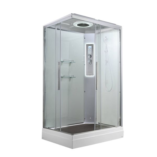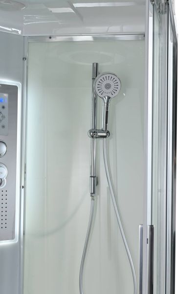 Стильная душевая кабина AvaCan сочетает в себе высокую функциональность, практичность и надежность. При изготовлении применяется безопасное закаленное стекло, надежно фиксируемое алюминиевым профилем.Профиль сделан из алюминия повышенной прочности. Сборка без силикона (увеличивает срок службы, защищает от протечек), внутренняя сборка (облегчает установку и ревизию; позволяет установить в ограниченном пространстве и обойтись без демонтажа других сантехнических приборов), смеситель резьбовой (без хомутов). Съемный экран поддона (позволяет осуществлять подключение и ревизию сифона).Двойные металлические ролики дверей (распределение нагрузки на два ролика, увеличивают срок службы). Душевая штанга(позволяет регулировать по высоте ручную лейку), ручная арома-лейка с витамином С (картридж в комплекте,есть возможность замены или удаления картриджа), полочки(из стекла, с ограничителем), сифон с гидрозатвором, сенсорный пульт управления с функциями: блютуз, LED подсветка, радио, вытяжка, гидромассаж спины, тропический (верхний) душ.