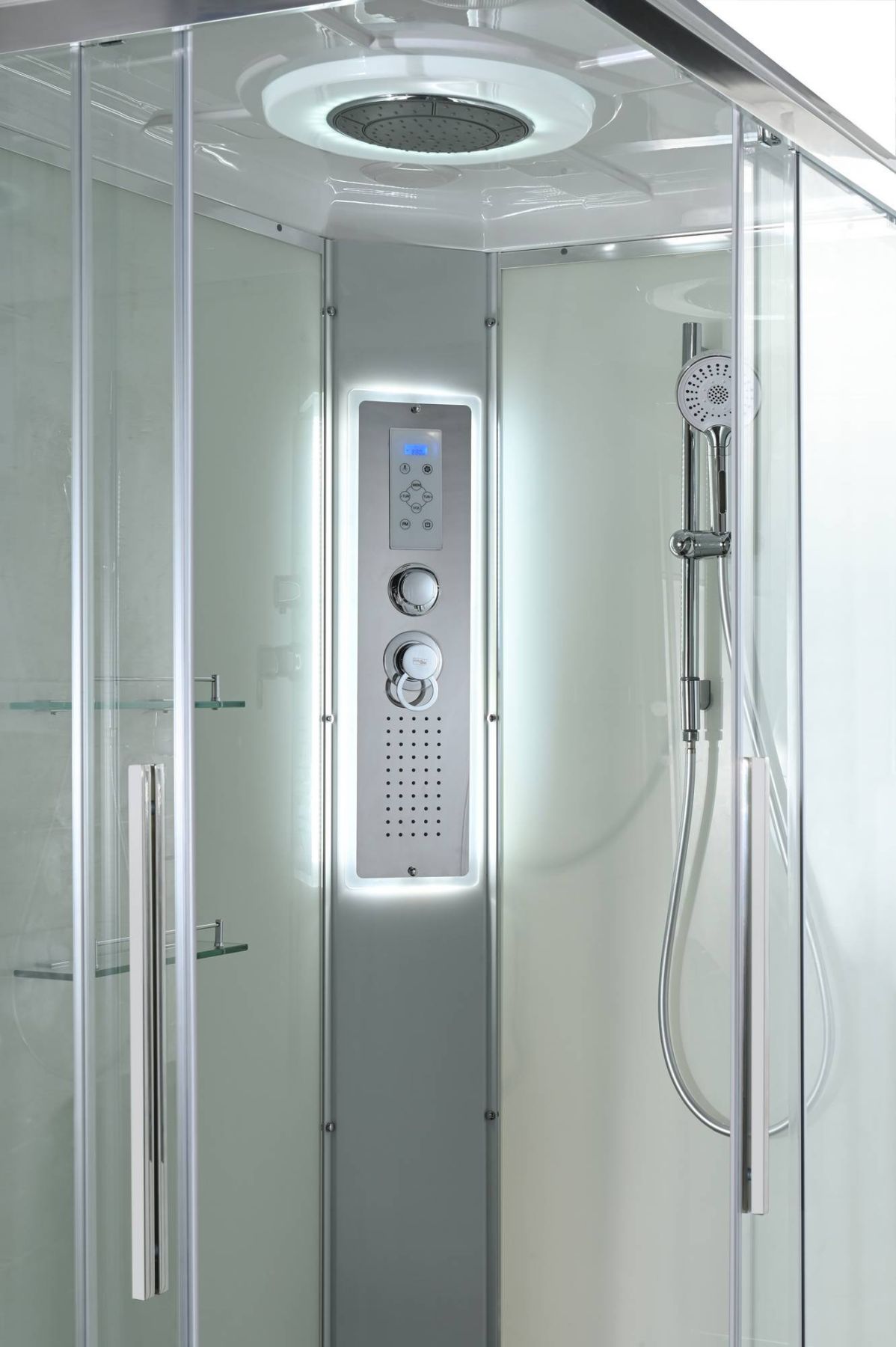 Стильная душевая кабина AvaCan сочетает в себе высокую функциональность, практичность и надежность. При изготовлении применяется безопасное закаленное стекло, надежно фиксируемое алюминиевым профилем.Профиль сделан из алюминия повышенной прочности. Сборка без силикона (увеличивает срок службы, защищает от протечек), внутренняя сборка (облегчает установку и ревизию; позволяет установить в ограниченном пространстве и обойтись без демонтажа других сантехнических приборов), смеситель резьбовой (без хомутов). Съемный экран поддона (позволяет осуществлять подключение и ревизию сифона).Двойные металлические ролики дверей (распределение нагрузки на два ролика, увеличивают срок службы). Душевая штанга(позволяет регулировать по высоте ручную лейку), ручная арома-лейка с витамином С (картридж в комплекте,есть возможность замены или удаления картриджа), полочки(из стекла, с ограничителем), сифон с гидрозатвором, сенсорный пульт управления с функциями: блютуз, LED подсветка, радио, вытяжка, гидромассаж спины, тропический (верхний) душ.