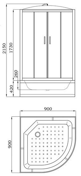 МОНТАЖ БЕЗ СИЛИКОНАКабина EF921 душевая PARLY (90х90х215)Размер: 90х90х215 смКомпактная кабина подойдет для небольших ванных комнат. Светлая модель практична и проста в уходе.Достоинства:
