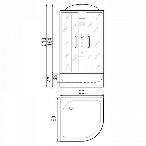 ~ крыша ~ верхний душ ~ верх.свет ~ динамик ~ вентилятор ~ цент.стойка ~ пульт упр-я ~ радио ~ телефон ~ смеситель с переключ. режимов ~ 3 г/м форс. ~ штанга ~ ручной душ 3х режимн. ~ зеркало ~ полочка ~ сиденье ~ поддон п/кр. выс.с/сид-ем с/съем.экр. (Н=46см) ~ сифон