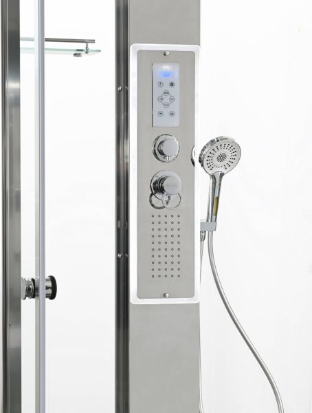 Стильная душевая кабина AvaCan сочетает в себе высокую функциональность, практичность и надежность. При изготовлении применяется безопасное закаленное стекло, надежно фиксируемое алюминиевым профилем.Профиль сделан из алюминия повышенной прочности. Сборка без силикона (увеличивает срок службы, защищает от протечек), внутренняя сборка (облегчает установку и ревизию; позволяет установить в ограниченном пространстве и обойтись без демонтажа других сантехнических приборов), смеситель резьбовой (без хомутов). Съемный экран поддона (позволяет осуществлять подключение и ревизию сифона).Двойные металлические ролики дверей (распределение нагрузки на два ролика, увеличивают срок службы). Душевая штанга(позволяет регулировать по высоте ручную лейку), ручная арома-лейка с витамином С (картридж в комплекте,есть возможность замены или удаления картриджа), полочки(из стекла, с ограничителем), сифон с гидрозатвором, сенсорный пульт управления с функциями: блютуз, LED подсветка, радио, вытяжка, гидромассаж спины, тропический (верхний) душ.