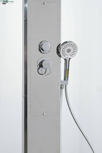 Стильная душевая кабина AvaCan сочетает в себе высокую функциональность, практичность и надежность. При изготовлении применяется безопасное закаленное стекло, надежно фиксируемое алюминиевым профилем. Профиль сделан из алюминия повышенной прочности. Сборка без силикона (увеличивает срок службы, защищает от протечек), внутренняя сборка (облегчает установку и ревизию; позволяет установить в ограниченном пространстве и обойтись без демонтажа других сантехнических приборов), смеситель резьбовой (без хомутов). Съемный экран поддона (позволяет осуществлять подключение и ревизию сифона).Двойные металлические ролики дверей (распределение нагрузки на два ролика, увеличивают срок службы). Душевая штанга(позволяет регулировать по высоте ручную лейку), ручная арома-лейка с витамином С (картридж в комплекте,есть возможность замены или удаления картриджа), полочки(из стекла, с ограничителем), сифон с гидрозатвором.