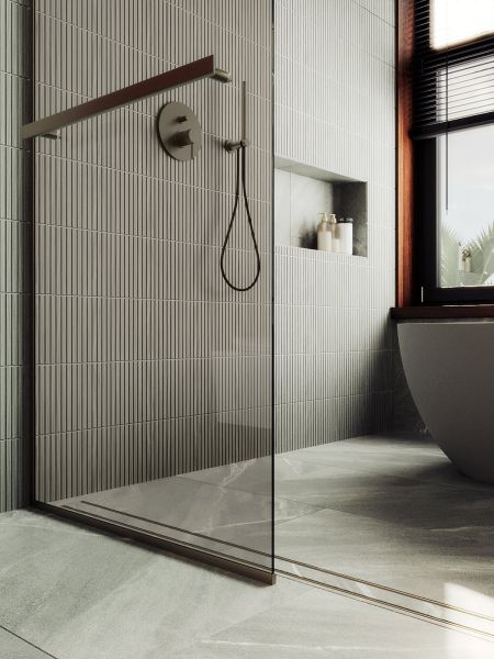 Душевая перегородка в профиле с полотенцесушителем представляет собой компактное и функциональное решение для разделения пространства в ванной комнате . Она изготовлена из закаленного стекла,анодированного алюминиевого профиля, что обеспечивает прочность и долговечность конструкции. Закаленное стекло , цвет бронза , толщина 8 мм , 1950*790-1 шт.