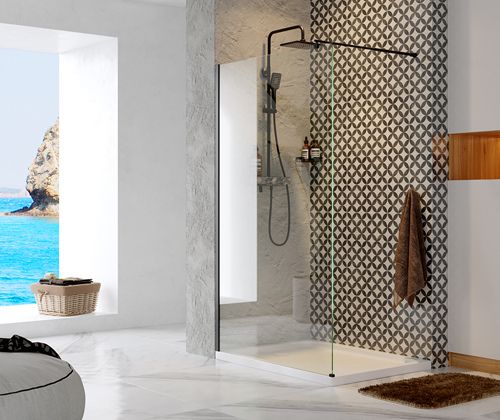 Душевая перегородка WasserkraftЗакаленное прозрачное стекло 8 мм,Анодированный алюминиевый профиль 35 мм,Регулирующий профиль до 15 мм,Возможность правой и левой установки, Цвет профиля: черный, Телескопический фиксатор 800 - 1200 мм