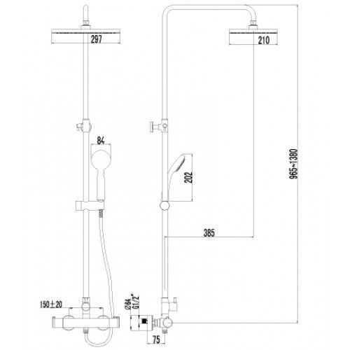 Артикул LM7860CСмеситель для душа с регулируемой высотой штанги и верхней душевой лейкой "Тропический дождь"