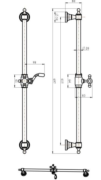 • Держатель ручного душа, расположенный на держателе на штанге. С возможностью перемещения по штанге.