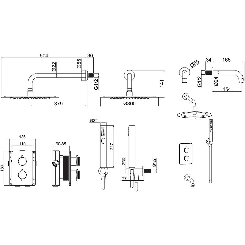 Верхний душ: 30х30 см.