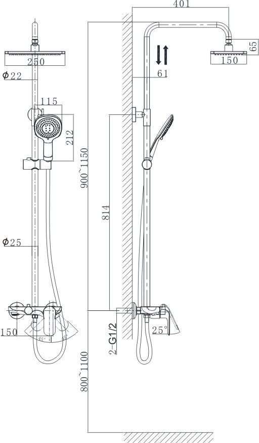 • Размер верхнего душа, см: