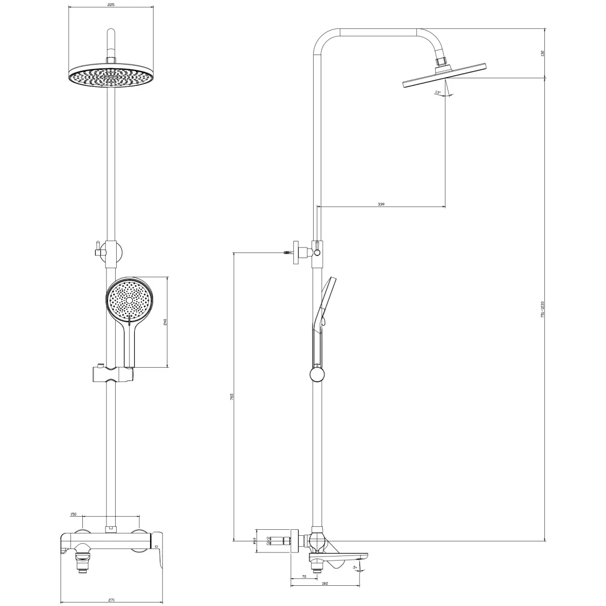 Душевая система DQ Dusseldorf DA1723706 225 мм, со смесителем, графит купить