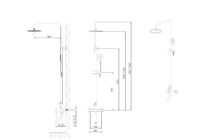 Душевая система с изливом RUSH Melos графит (SUS1101-40Grey) купить