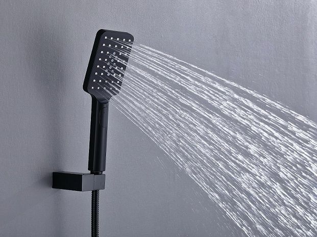 - Душевая система скрытого монтажа, с термостатом с квадратной лейкой (латунь) в стиле модерн