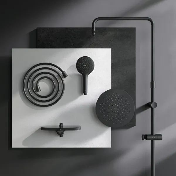 Душевая стойка Am.Pm Like F0780222 черныйДушевая система от бренда AM.PM коллекции Like представлена в современном дизайне – от пропорций ручного и верхнего душей до рисунка расположения форсунок на лейках. Цвет - черный матовый. Размер (Ш/Г/В): 254x569x1030-1460 мм. Материал душевой системы - латунь, ABS-пластик, нержавеющая сталь.