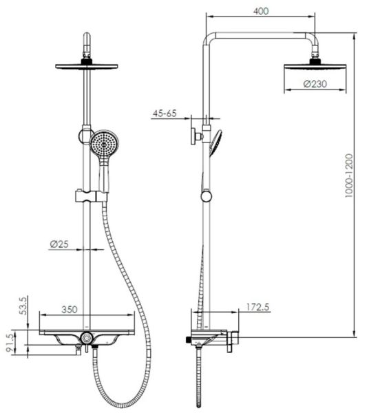 состоит из: верхний душ, ручной душ, смеситель для душа, штанга для душа, держатель для душаверхний душ 225 1jetразмер душевого диска: 225 x 225 ммтип струи: Rainшарнирное соединение: регулируемый угол верхнего душаДушевая лейка: 3 струиС изливомдлина держателя для душа: 400 ммдержатель для ручного душа регулируемый по высотеповоротный держатель для душавид монтажа: внешний монтажсоединительная резьба G ½межосевое подключение 150 мм ± 12 ммподъемная труба может быть укорочена по высотеИталия2 года гарантии