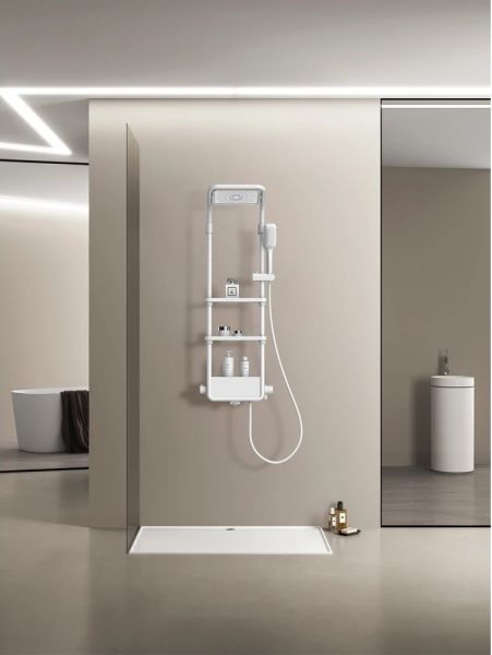 Душевая стойка AQUAme AQM8003W с термостатом белый матовый