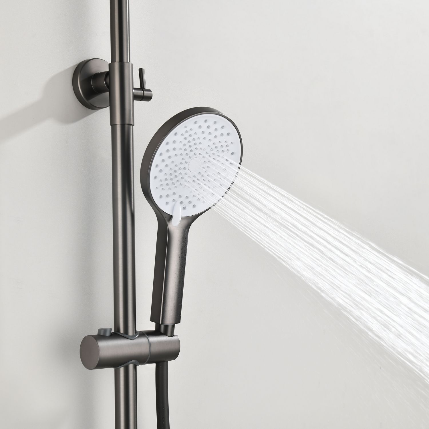 Душевая стойка производителя Black&White в цвете оружейная сталь. Корпус изделия изготовлен из сантехнической латуни, материал высокоресурсный и безопасный для здоровья. Управление потоками воды осуществляется с помощью керамического картриджа повышенной пропускной способности. Из потребителей на стойке установлен верхний душ, ручная лейка с режимами и излив, интегрированный в фронтальную часть корпуса. Для выбора режима работы установлен поворотный механический дивертор цилиндрической формы с насечками на корпусе для удобства использования мокрыми руками. Простые геометрические линии продукта гармонично встроятся в лаконичные интерьеры ванной комнаты.