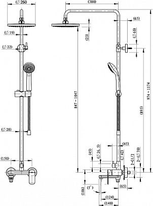 Душевая стойка Bravat Opal F6125183CP-A3-RUS