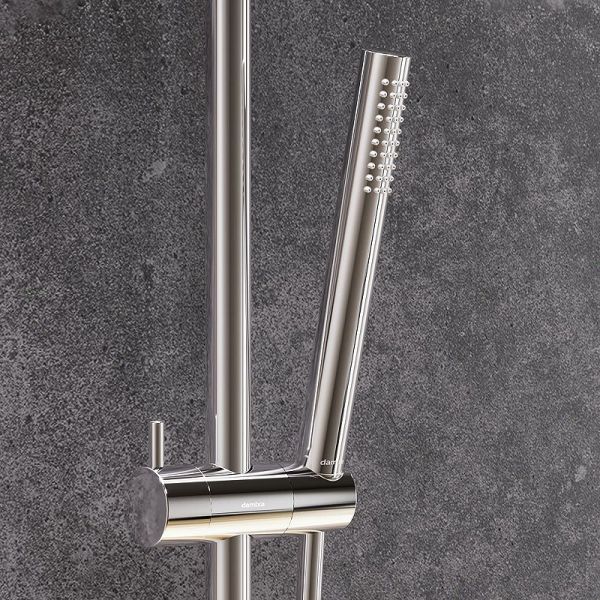 Душевая стойка Damixa Scandinavian Pure 936810000 с термостатом ХромДушевые системы из коллекции Scandinavian Pure – воплощение минималистичного датского дизайна и солидного скандинавского качества. Элегантные обтекаемые формы и ювелирный блеск станут настоящим украшением современной ванной комнаты. Максимальная безопасность: термостатический картридж 35 мм обеспечивает точную настройку температуры и напора воды. Выставляйте комфортные для вас параметры легким поворотом правой ручки смесителя. Увеличенный диаметр верхнего душа с возможностью регулировки угла наклона и ручная лейка в трендовой форме стика подарят вам полный спектр ощущений - помогут взбодриться утром и расслабится вечером. Переключайте потоки воды между ручной и тропической лейками плавным поворотом левой ручки смесителя, а между ручной лейкой и изливом - поворотом излива. Инновационное покрытие High Gloss надежно защищает хромовую поверхность душевой системы от мелких повреждений и сохраняет ювелирный блеск на долгие годы.