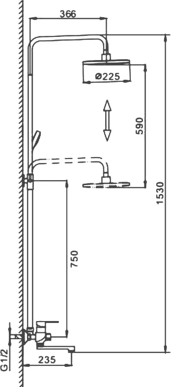 Вылет верхнего душа, см