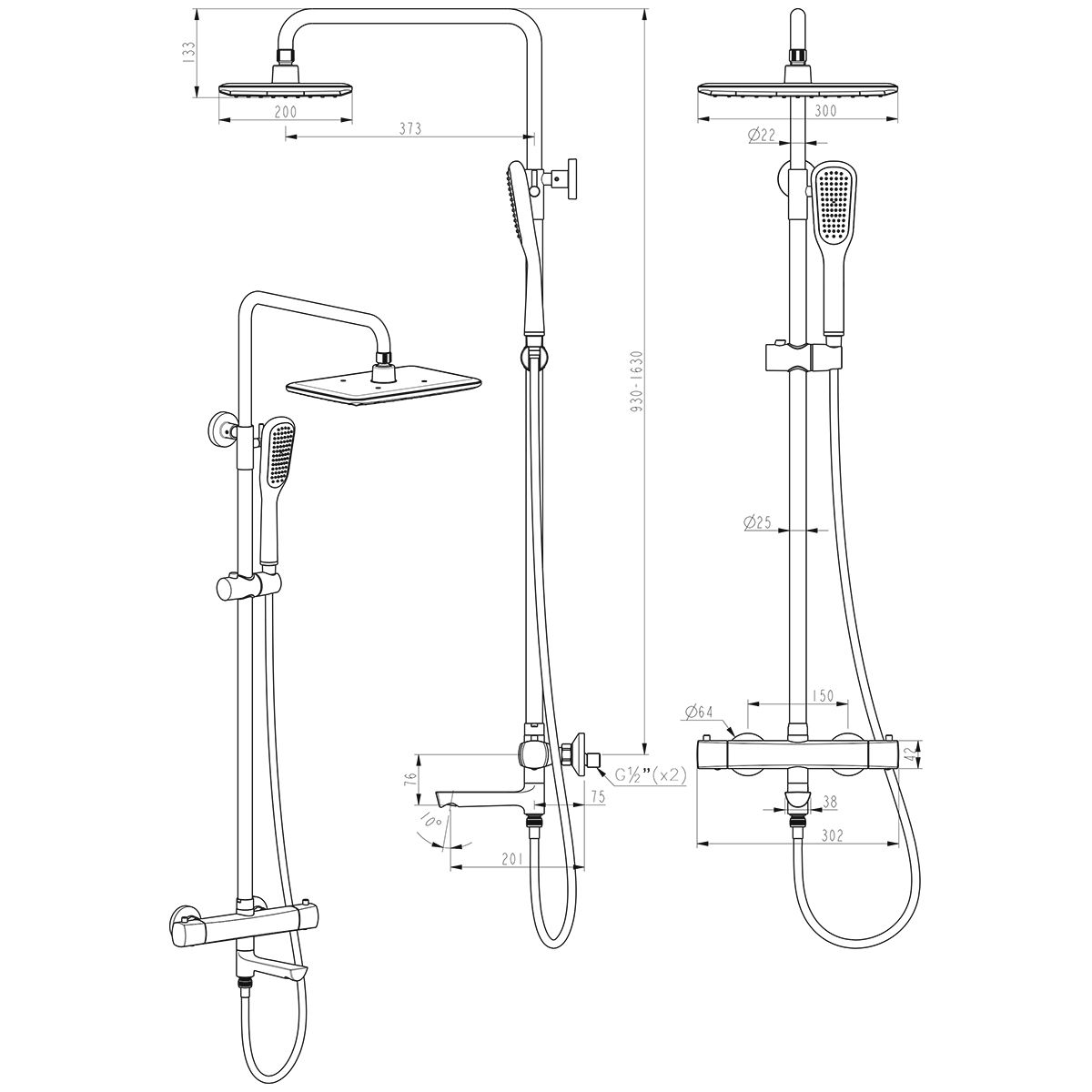 - Размер верхнего душа, см:30