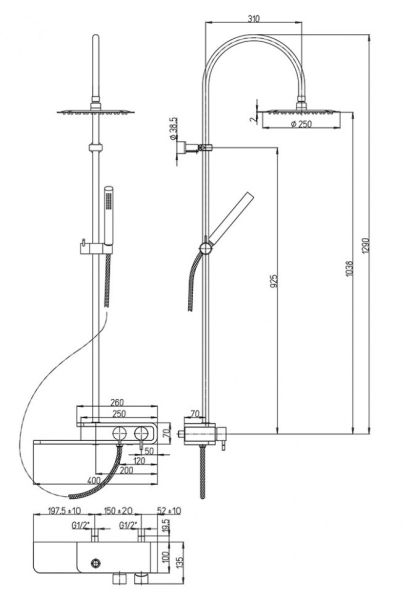 • Наличие верхнего душа и ручной лейки.
