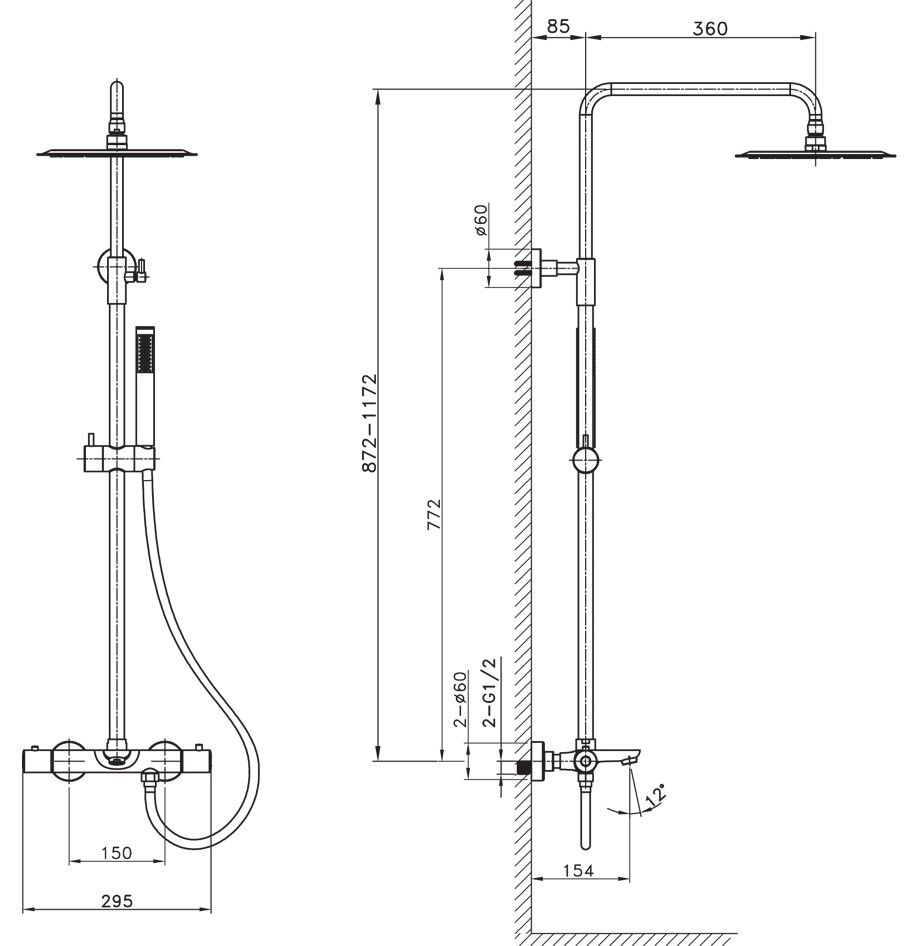 Душевая стойка Raiber Graceful RPB-007 с термостатом чёрный матовый