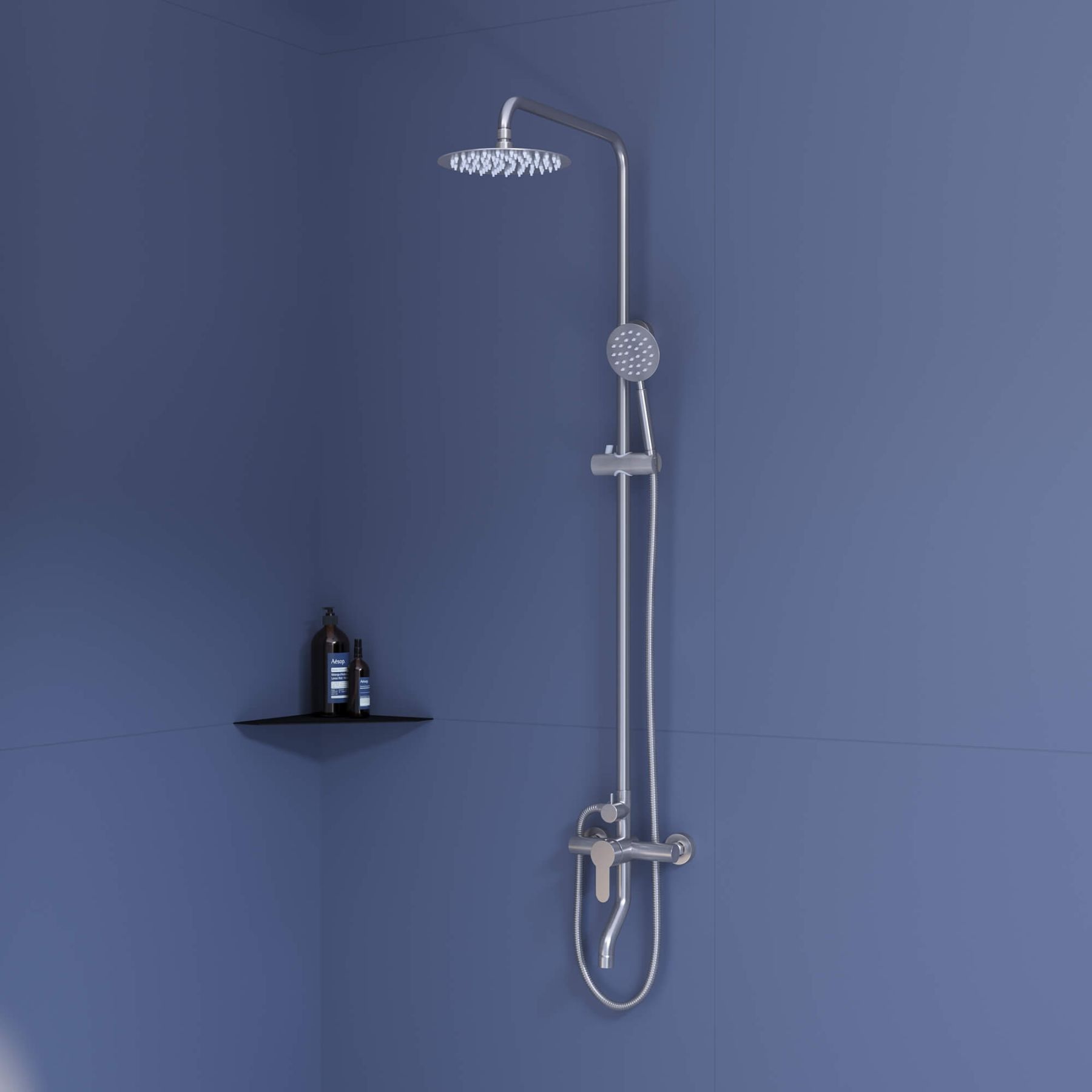 • Стальная штанга с регулировкой высоты головного душа