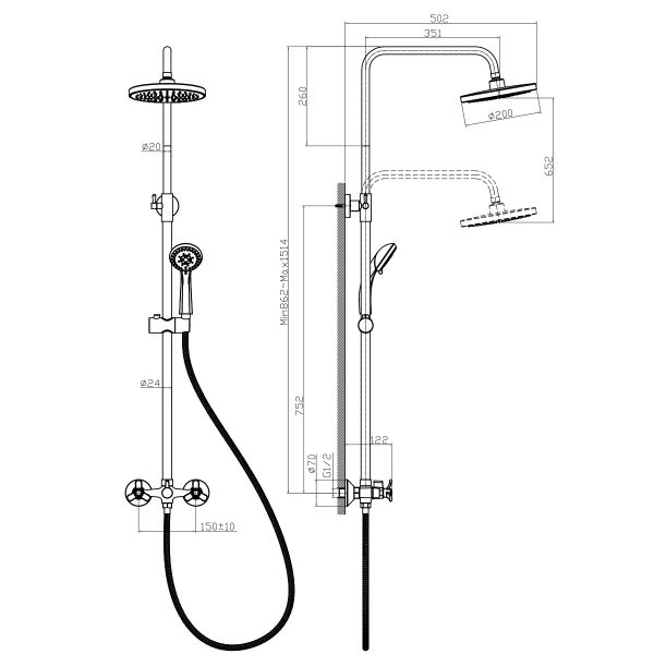 Душевая стойка Rossinka Q02-45 для ванны и душа