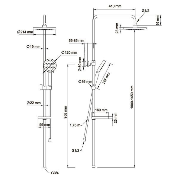 - Размер верхнего душа, см:21.4