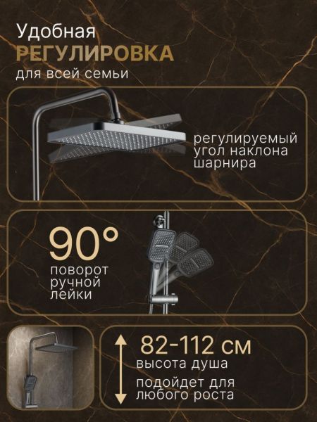 Душевая система с тропическим душем Vexorus - это система, которая превратит вашу ванную комнату в настоящий уголок роскоши и комфорта. Изделие выполнено в графитовом цвете, что позволяет гармонично его использовать в современном интерьере.